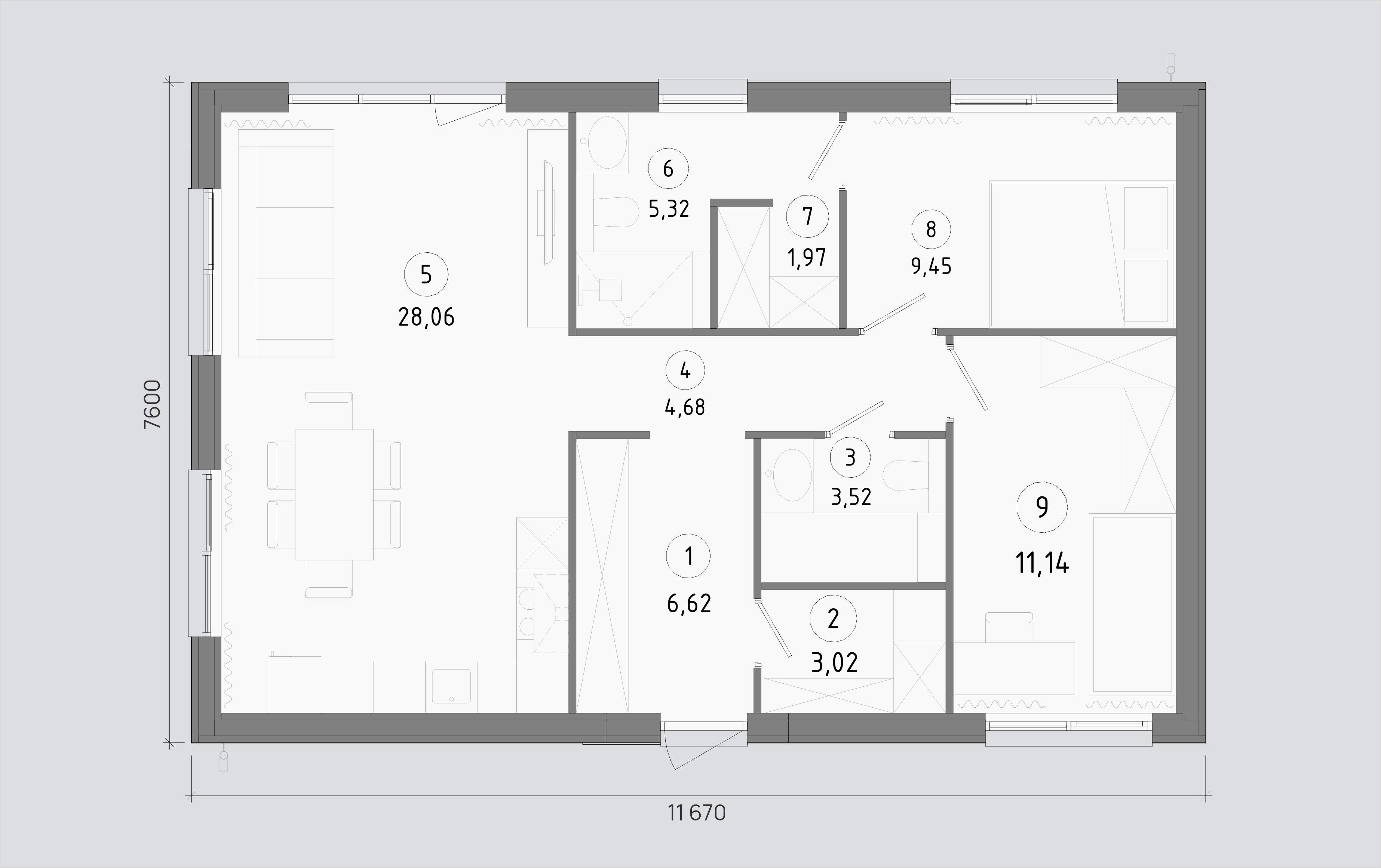 7,6 х 11,67 м